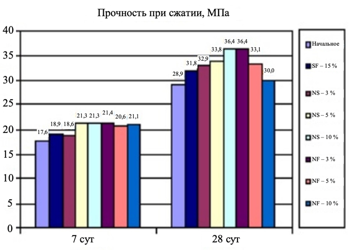 Прочность на сжатие укрепленного бетона, модифицированного наночастицами: