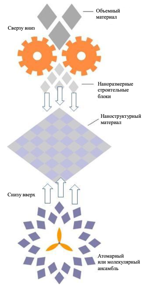 Рисунок 2 - Схема подходов «сверху вниз» и «снизу вверх» в нанотехнологии