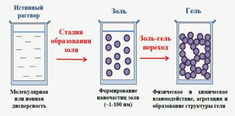 Эффективность наноматериалов в бетоне, несмотря на то, что для их производства требуется менее 1% цемента по массе, зависит от масштабируемости и экономической эффективности их производства. Методы промышленного производства наноматериалов включают плазменно-дуговую обработку, плазменный пиролиз, химическое осаждение из газовой фазы, электроосаждение, золь-гель синтез, механохимические процессы и использование природных наносистем. Среди них золь-гель синтез (рис. 6) выделяется как распространенный метод получения наноразмерных материалов, таких как нанокремнезем, с использованием тетраэтоксисилана в качестве прекурсора и получением аморфного нанокремнезема SiO2 с высокой удельной поверхностью .