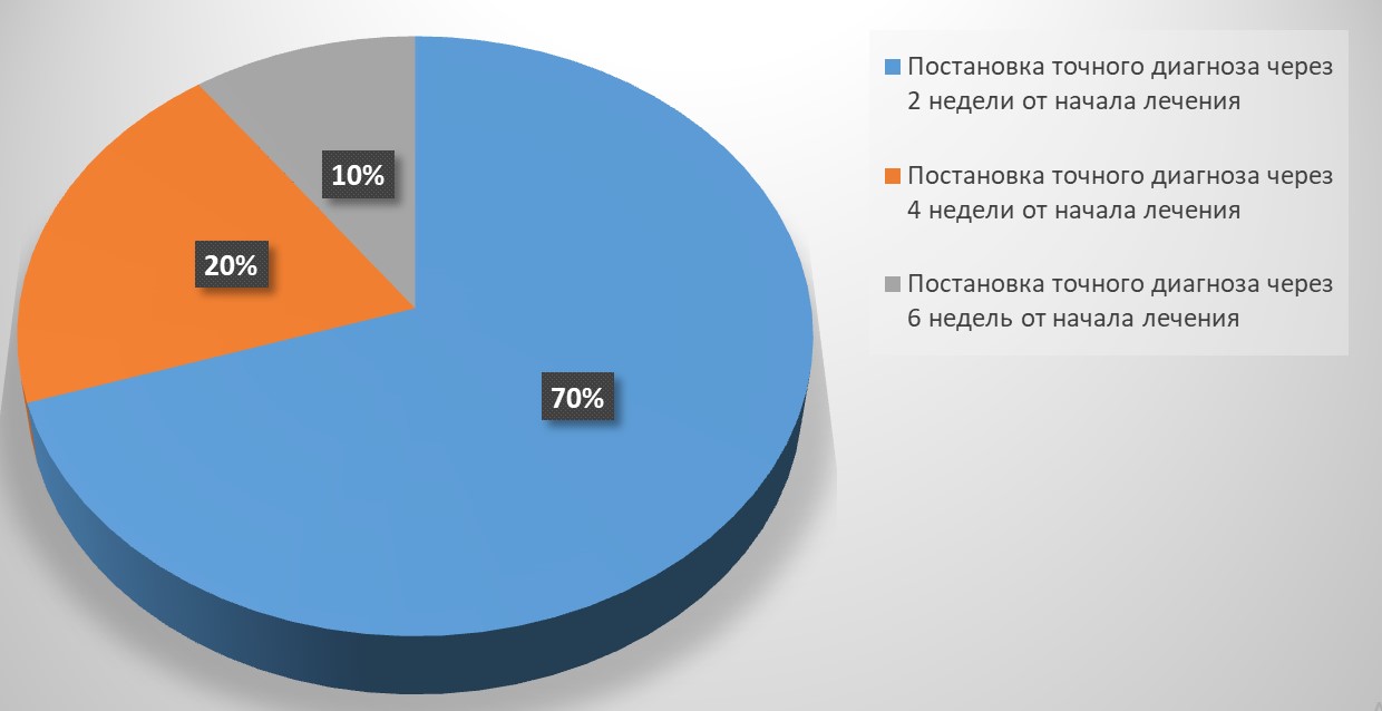 2. Точный, окончательный диагноз был выставлен в сроки от 2 до 6 недель.