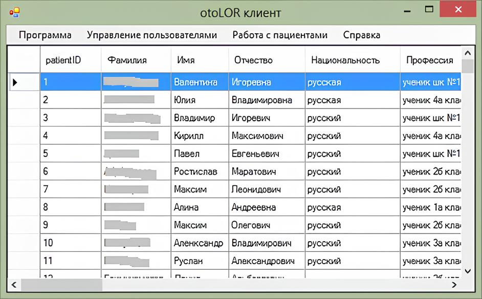 Рисунок 1 - Интерфейс просмотра базы данных исследуемых