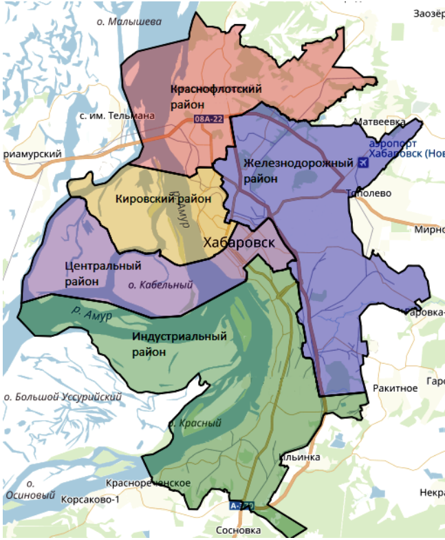 Работа выполнена с использованием данных Единого государственного реестра недвижимости; статистической отчетности администрации города Хабаровска; статистических данных Управления Федеральной службы государственной статистики по Хабаровскому краю, Магаданской области, Еврейской автономной области и Чукотскому автономному округу; существующего и ранее утвержденных генеральных планов города Хабаровска.