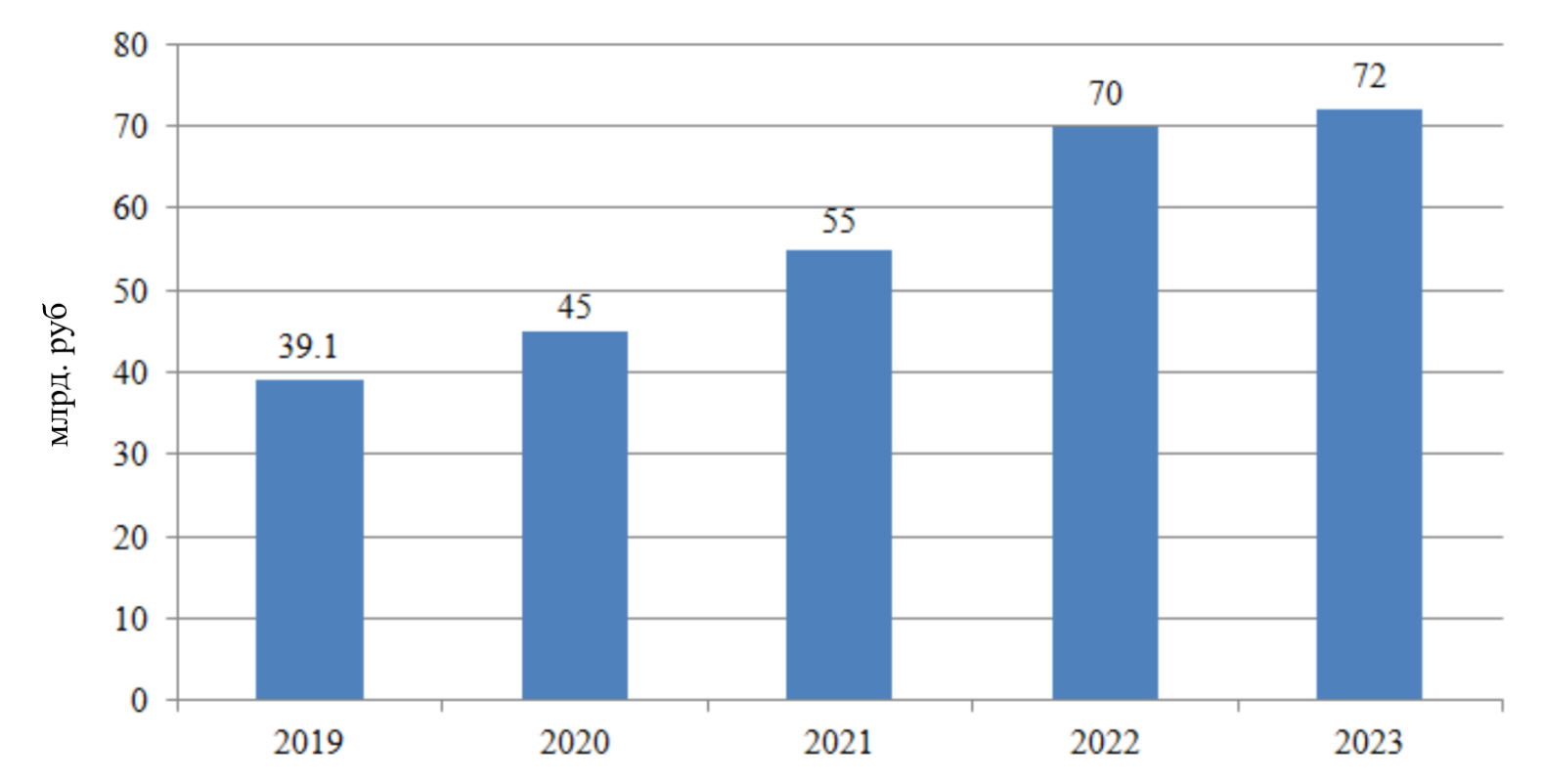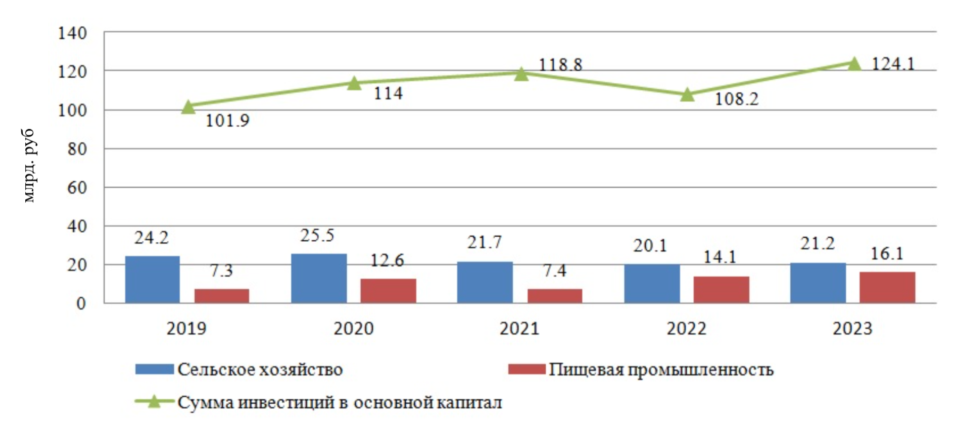 Рисунок 3 - Динамика инвестиций в агропромышленный комплекс Липецкой области за 2019-2023 гг., в фактически действовавших ценах