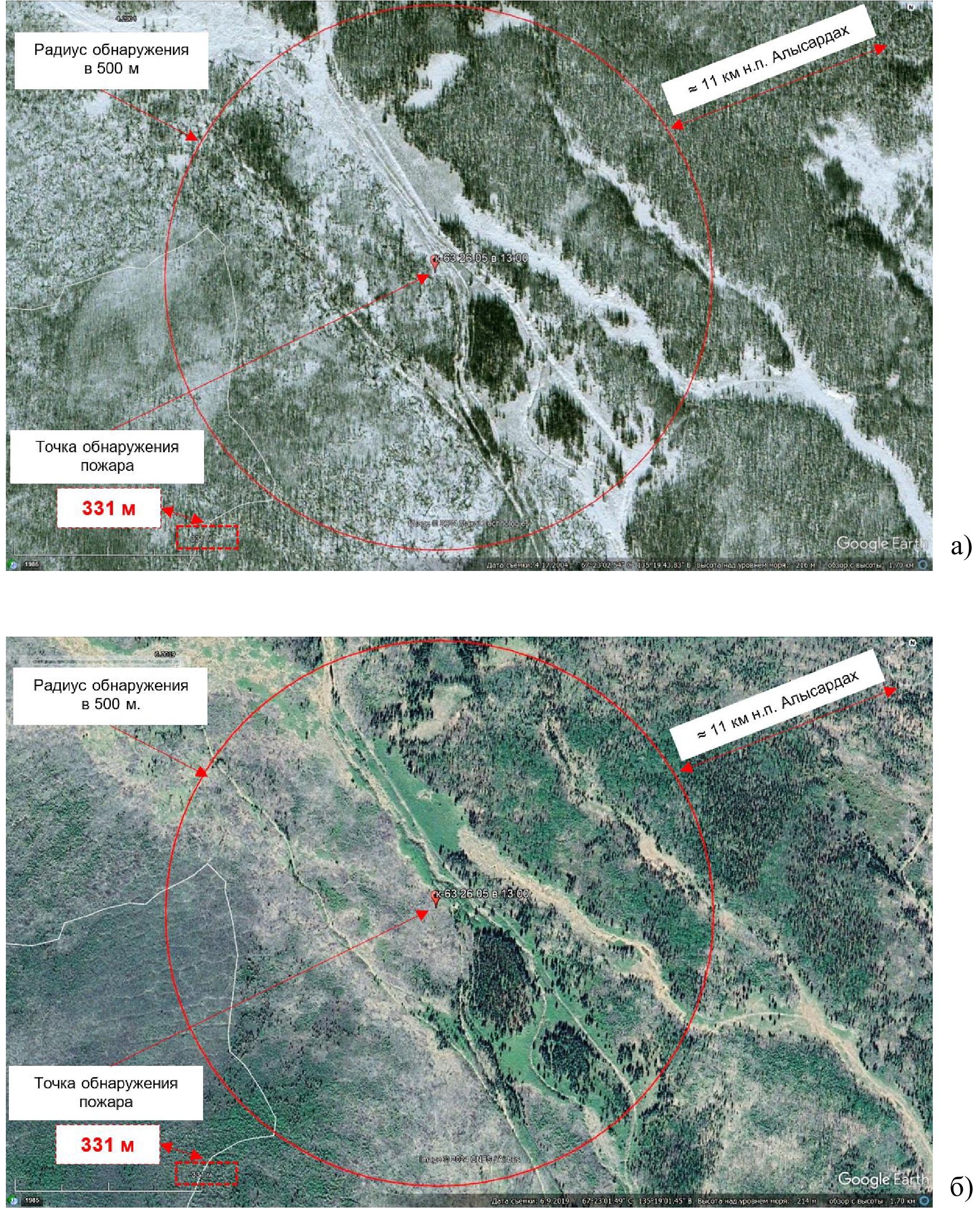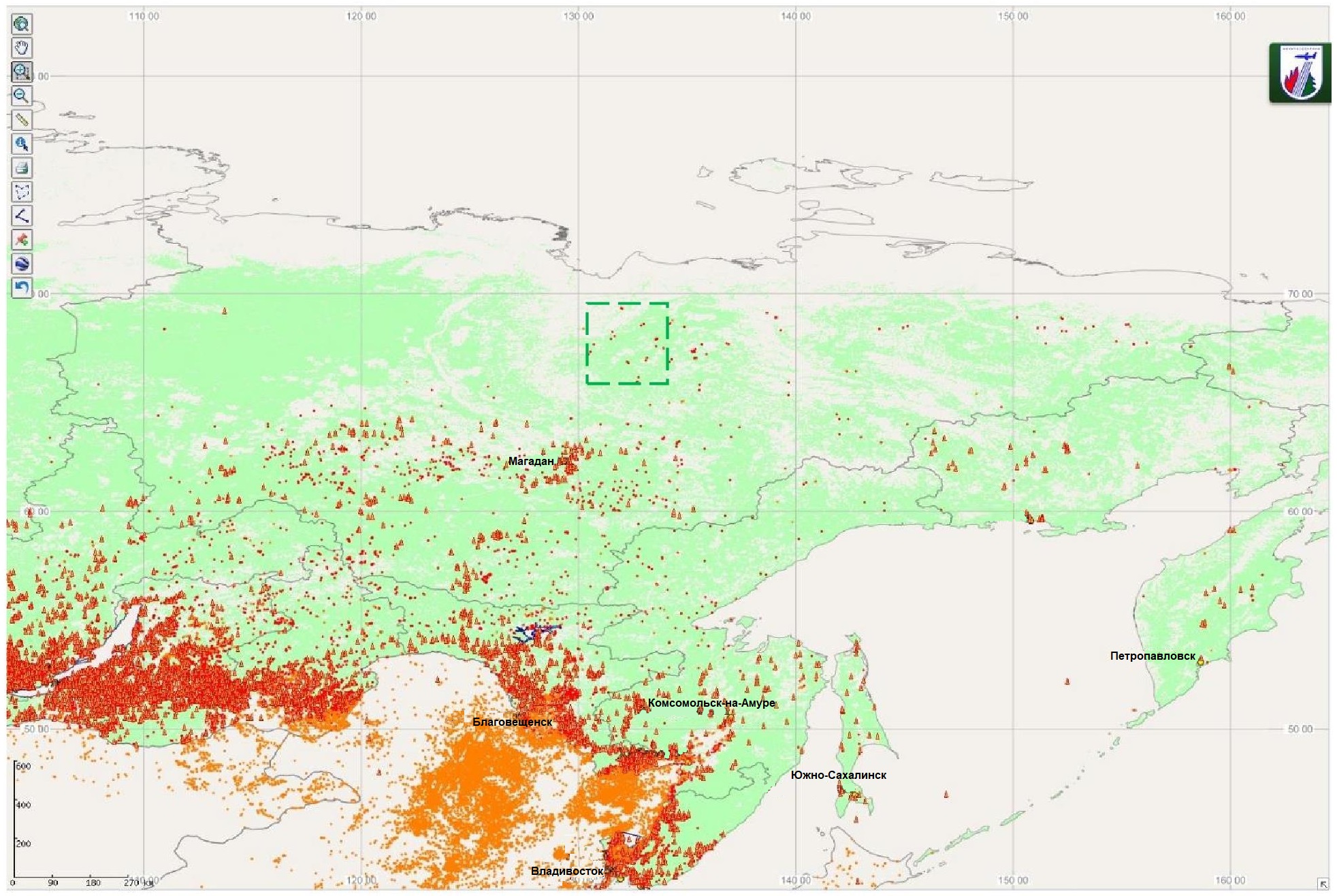 Для визуального сравнения данных, получаемых наземными службами, и информации, поступающей от космических систем мониторинга, на примере территории Республики Саха (Якутия) было проведено сопоставление графических данных, которые аккумулируются в информационной системе дистанционного мониторинга «ИСДМ-Рослесхоз».