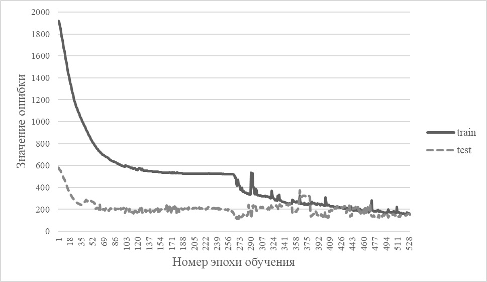 Рисунок 3 - Графики ошибки обучения и тестирования нейронной сети