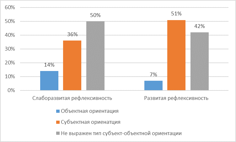 Рисунок 1 - Распределение субъект-объектных ориентаций по типам рефлексивности