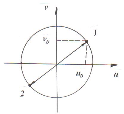 непосредственно переводящей плоскость x0, y0 во внутренность круга единичного радиуса u02+v02<1 (при этом бесконечно удаленным точкам плоскости соответствует окружность единичного радиуса u02+v02=1). Заметим, что отображения (1) и (2) являются взаимно-непрерывными и взаимно-однозначными, т.к. их якобианы отличны от нуля. Исключение для (2) составляют точки окружности u02+v02=1. При этом, поскольку