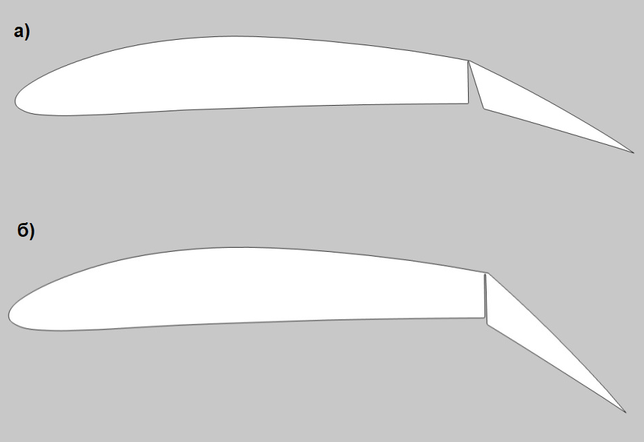 Рисунок 2 - Изображения профилей крыла с закрылком, повернутым на 15° (а) и с закрылком, повернутым на 30° (б)