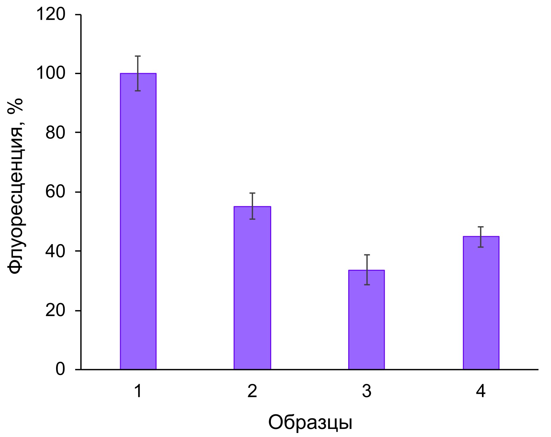 Во всех экспериментах использовали водный раствор флуорофора с одинаковой оптической плотностью. Все измерения проводили в трех повторностях.