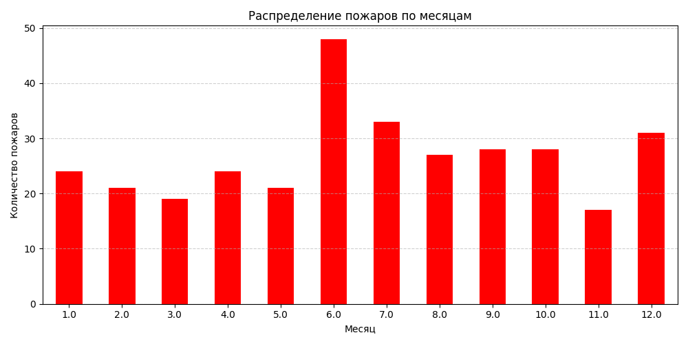Для анализа и визуализации исходных данных о пожарах было разработано программное средство на языке программирования Python с использованием таких библиотек, как Pandas, Scikit-Learn, MatplotLib, Folium