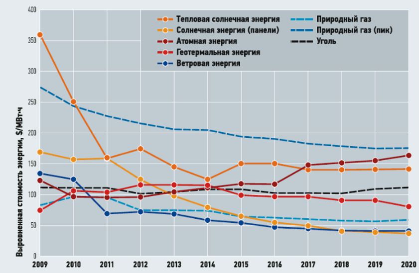 Рисунок 4 - Динамика стоимости энергии, произведённой на электростанциях разных типов