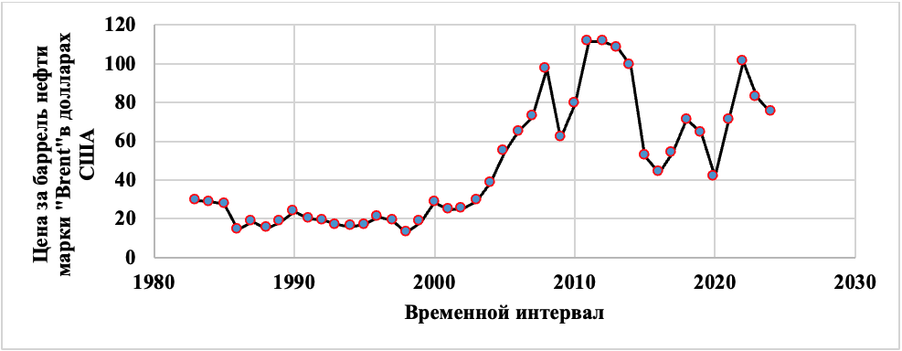 Рисунок 2 - Стоимость нефти «Brent» в 1983-2010 гг.
