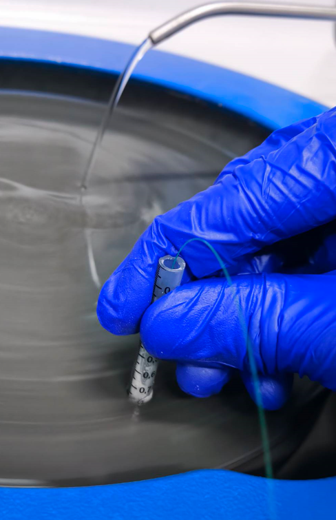 В достаточной мере образование внутриволоконных полостей можно феноменологически объяснить явлением кавитации, однако с допущением, что газ появляться за счет разрыва связей SiO2 и (или) легирующих примесей. Для вышеуказанного кавитационно-подобного сравнения характерны высокие значения температуры и давления внутри полости, а также высокие скорости движения поверхности раздела сред. Создаваемая полость сначала расширяется и её радиус достигает максимального значения, после чего она начинает сжиматься за счет поверхностного натяжения и внешнего воздействия остывающего материала.