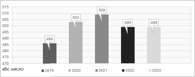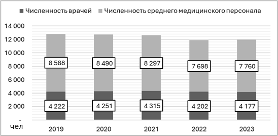 Рисунок 1 - Динамика численности медицинских кадров в 2019-2023 гг. в Республике Мордовия