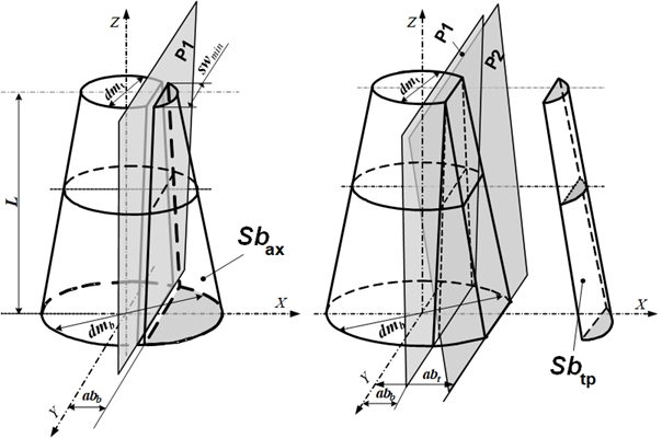 Объем древесины в пустотелом брусе, получаемом при раскрое тонкомерных круглых лесоматериалов параллельно оси и параллельно сбегу, можно определить, воспользовавшись геометрическим приложением определенных интегралов