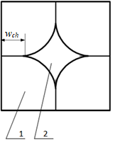 , . Результаты сравнения прочностных показателей пустотелых брусьев с аналогичными показателями брусьев квадратного сплошного сечения показывают, что они приближаются к показателям для бруса сплошного сечения. Поперечное сечение пустотелого клееного бруса показано на рис. 1. Технологический процесс изготовления такого бруса предусматривает продольный раскрой на четыре сегмента, как правило, параллельно оси бревна, что связано с более высоким выходом продукции. Расчеты, выполненные в ТОГУ, показали, что расхождения в значениях между прочностными показателями брусьев сплошного и полого сечения составляют в среднем 0,42% . При этом ширина склеиваемой фаски сегмента (wch) должна составлять не менее 0,32 от ширины склеиваемого бруса , т. е. изменение ширины фаски позволяет подобрать оптимальные размеры сегмента.