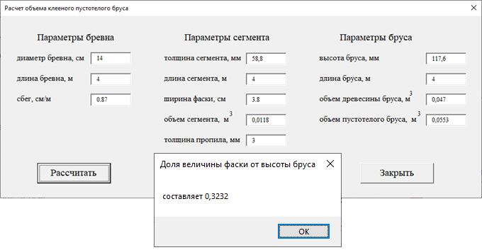 При расчете объема древесины пустотелого бруса