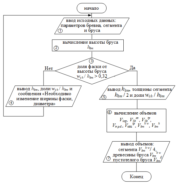 В работе для ускорения процесса вычислений и оперативного подбора из тонкомерных бревен сегментов постоянной высоты (ширины), обеспечивающих максимальную прочность пустотелого клееного бруса, впервые разработаны алгоритм и соответствующее пользовательское приложение, которое, кроме того, позволит прогнозировать выход пустотелого бруса требуемого сечения из имеющихся тонкомерных круглых лесоматериалов.