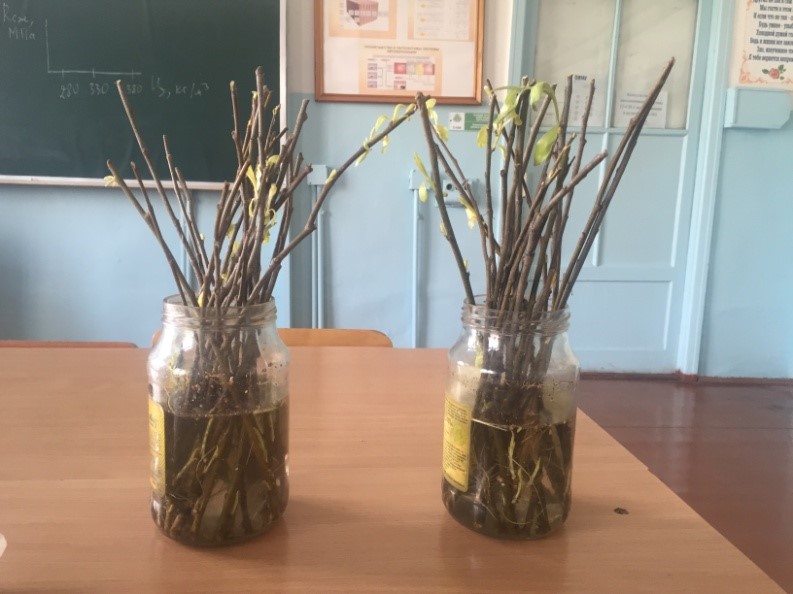 Рисунок 1 - Стеклянные банки с побегами (черенками) ивы