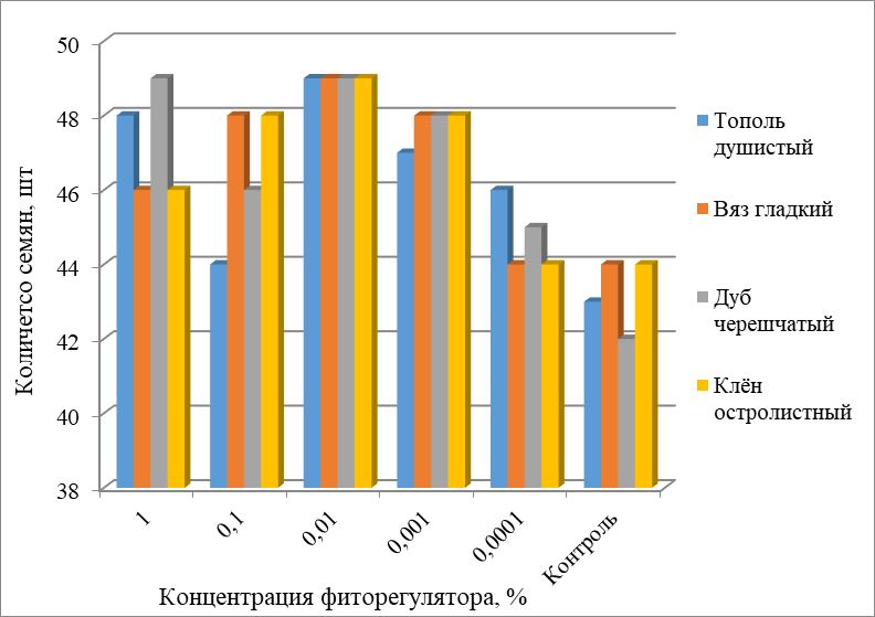Рисунок 2 - Количество проросших семян при разных концентрациях фиторегулятора, используемых при их обработке